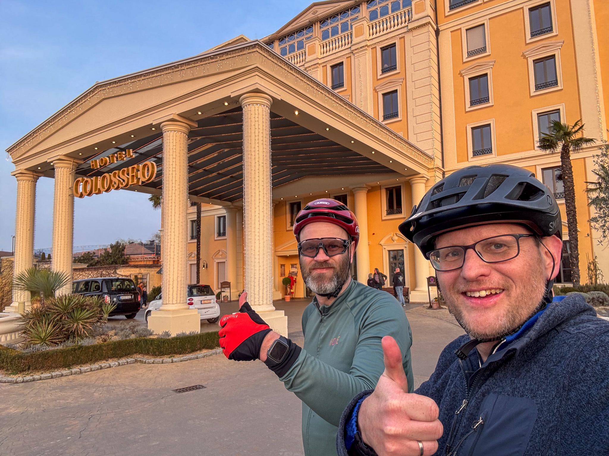 Zu diesem Zeitpunkt waren die körperlichen Zimperlein auch nicht mehr zu ignorieren und so fiel eine erneute Umplanung an: den restlichen Weg nicht mehr auf dem Schotter am Rhein, sondern auf dem gut ausgebauten Radweg entlang der Landstraße. Die Entscheidung stellte sich als richtig heraus – wir kamen sicher und ohne weitere Zwischenfälle in Rust an, konnten noch am Dinner teilnehmen und waren in den nächsten Tagen nicht zu stark gezeichnet.