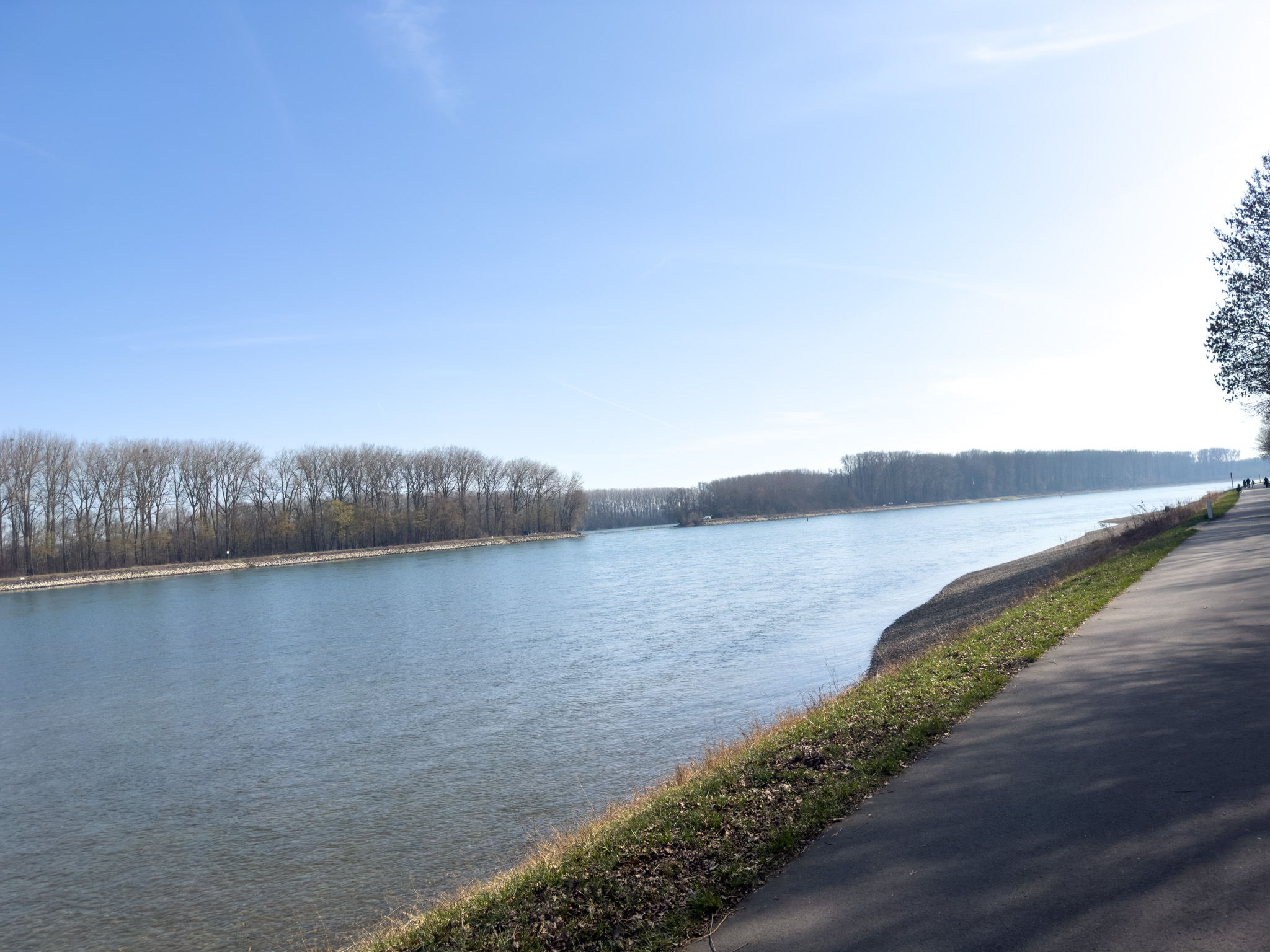 Als wir dann endlich den Radweg am Rhein erreichten, war die Erleichterung nur von kurzer Dauer. Der Schotterweg war auf Dauer unangenehm zu fahren, an einem Sonntag herrschte viel Betrieb auf dem Weg, und Möglichkeiten zum Einkehren gab es kaum. Zeitweise wichen wir auf die Straße aus, um etwas besser voranzukommen. So war die erste größere Pause erst in Kehl nach gut 80km.